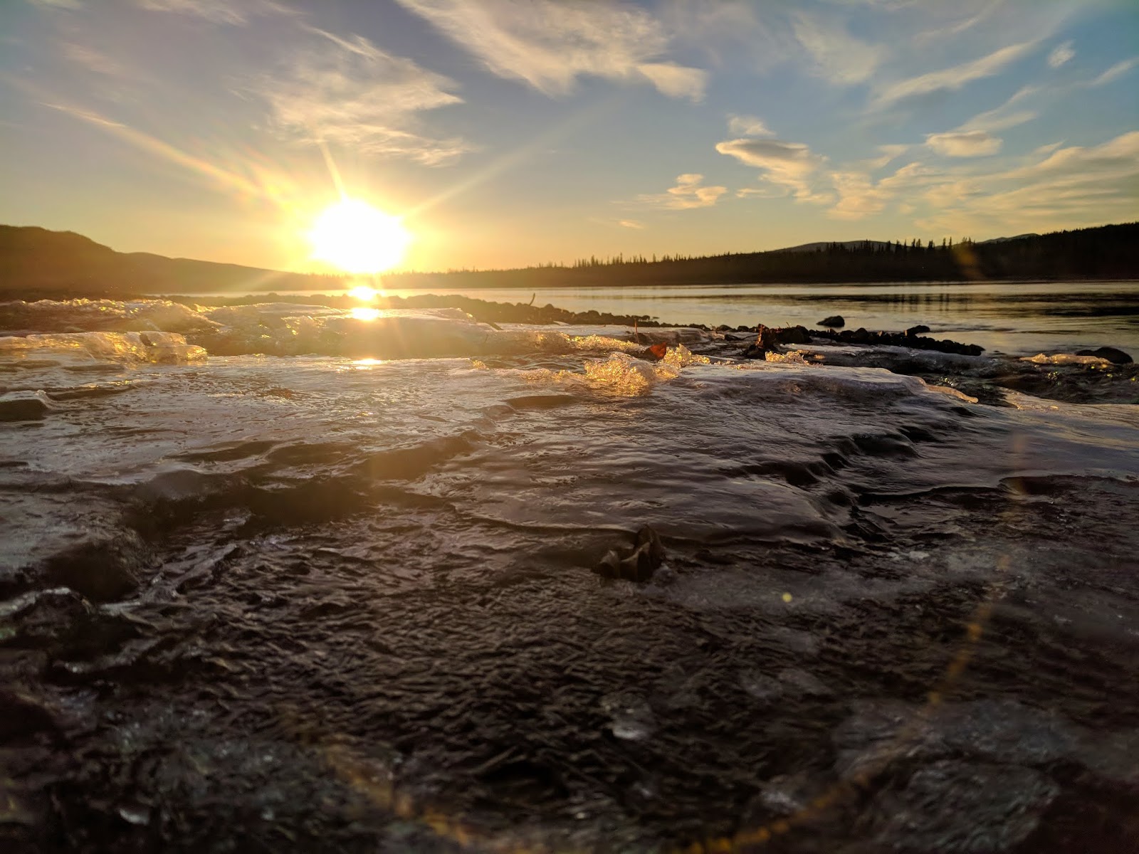 | Sunset at one of the many local creeks that feed into the Yukon. -Yukon River, AK |